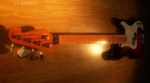 Dimensiones: longitud de 45″ (incl. el boton de la correa), ancho en el punto máximo de 13″, ancho del mástil en la cejuela es de 1 11/16″ . Longitud de tiro (Scale length) 34″.Peso 8.5 lbs.