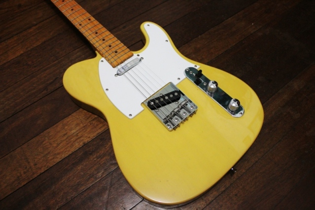 La guitarra te viene con cuerpo de aliso y en acabado rubio Butterscotch